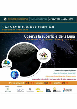Con esta actividad que hemos preparado, podrás observar la Luna, el objeto celeste más brillante del cielo nocturno por ser el más cercano a la Tierra. Gracias a sus espectaculares cráteres y montañas, nunca defrauda cuando se observa con el telescopio.